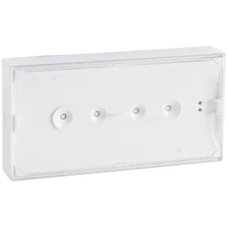 Description Ampoules et témoin de charge LED. Fond débrochable translucide permettant de réutiliser les points de fixation existants. Borniers automatiques. Tenue au fil incandescent 960 °C.IP42 -IK07.Classe II.